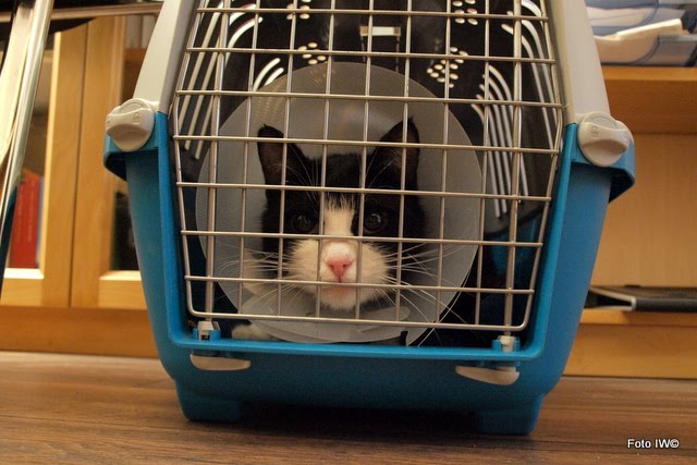 Z powrotem w domu jesteśmy ok. 17. Pani doktor poradziła potrzymać ją jeszcze ok. godzinę-dwie w kontenerku, bo ledwo się będzie ruszać i może sobie coś zrobić, spaść skądś czy coś.