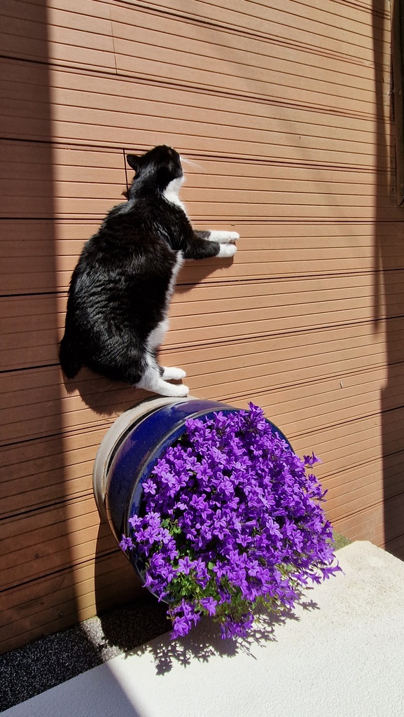 No to jak te zdjęcia? Zaraz zaraz… Kotek znów ładnie leży. I kwiatki są taaaakie piękne! Pstryk! Pstryk! I jeszcze z tej perspektywy: pstryk!