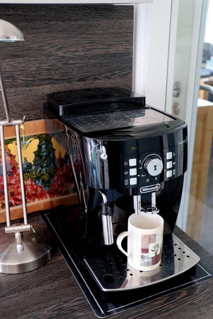 OK, teraz ściągnąć zdjęcia z aparatu na komputer. Przynoszę kable. A może by tak kawa? Uruchamiam ekspres. Wylewam wodę. Uzupełniam wodę. Wyrzucam fusy. Naciskam guzik, przynajmniej kawa sama się robi. Pod koniec słyszę, że młynek mieli ostatnie ziarenka… Aha, uzupełniam kawę w zbiorniku. Wyciągam kolejny woreczek kawy, stawiam przy ekspresie, żeby pamiętać dosypać do pojemników.