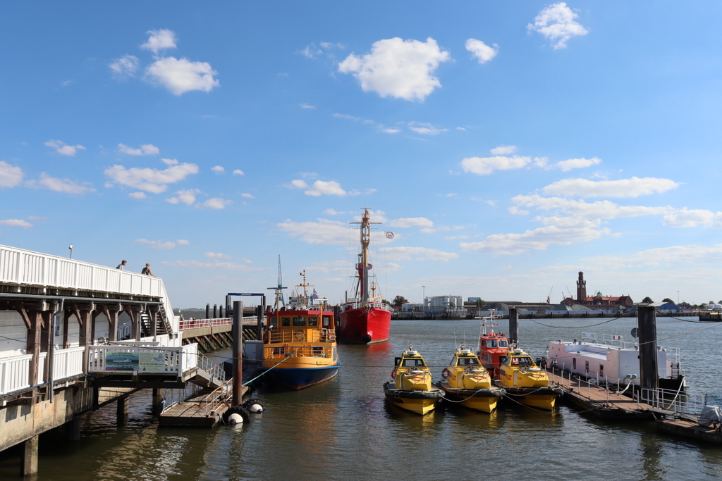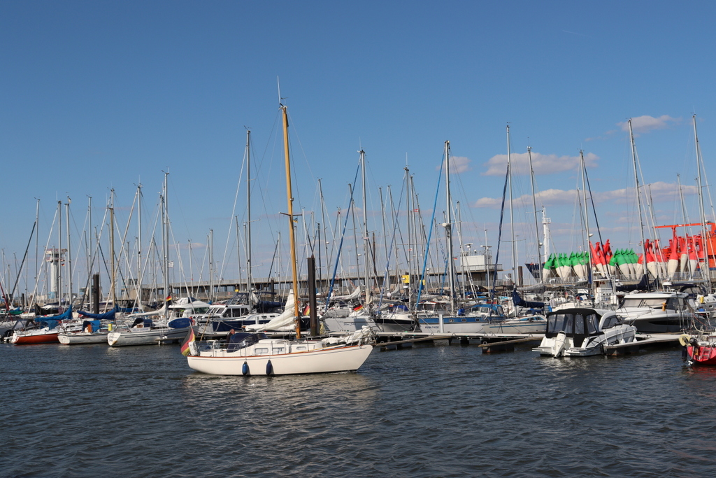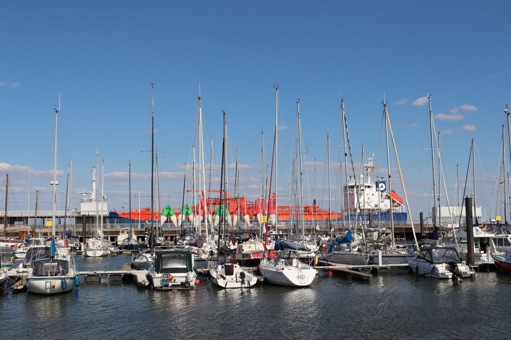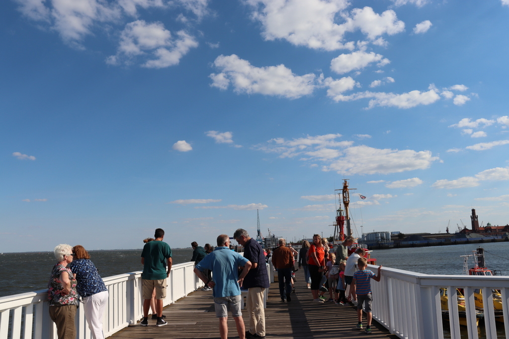 Najważniejszym i najciekawszym punktem widokowym w Cuxhaven jest tzw. Alte Liebe, czyli długie dwupoziomowe białe molo, po którym zawsze krąży mnóstwo turystów, wieża kontrolna tuż obok (obecnie w remoncie, więc szczelnie zapakowana) i port jachtowy. Stojąc czy siedząc dłużej na molo można posłuchać, jakie jednostki zbliżają się właśnie bądź przepływają obok. Podawane są ich nazwy, dane techniczne, armator i tego typu informacje. Nigdzie indziej tego nie widziałam. Dla amatorów jednostek pływających – świetne miejsce!