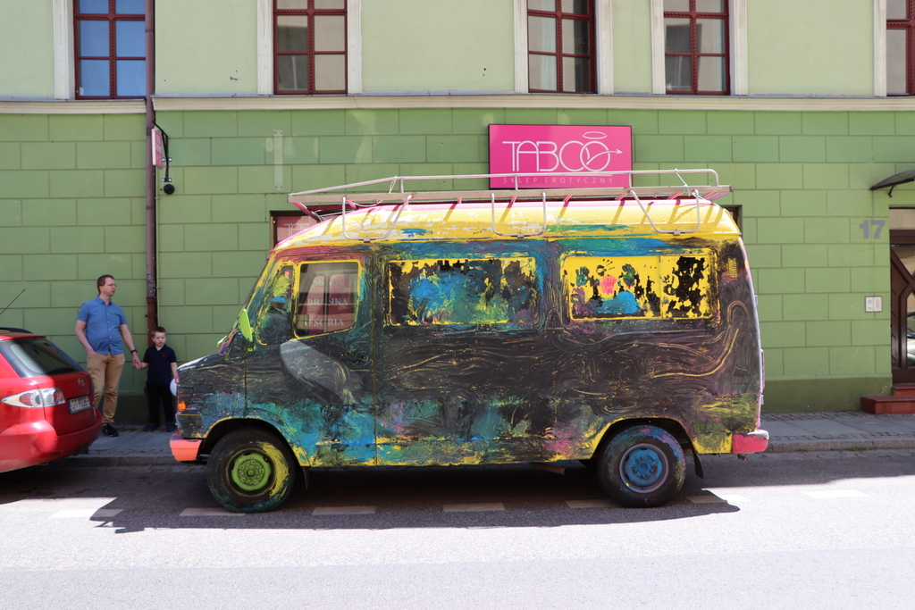 Może jeszcze jeden motyw z Torunia na zakończenie, auto stało sobie przed tutejszym sex-shopem ze znaczącym hasłem życiowym: NEVER GIVE UP!