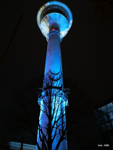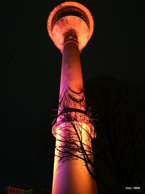 To właśnie nad tym urzędem stoi, a właściwie wznosi się ponad nim tzw. Wieża radarowa (Richtfunkturm). To podobnie charakterystyczna budowla, jak Pałac Kultury i Nauki w Warszawie. W ciągu dnia wieża jak wieża…
